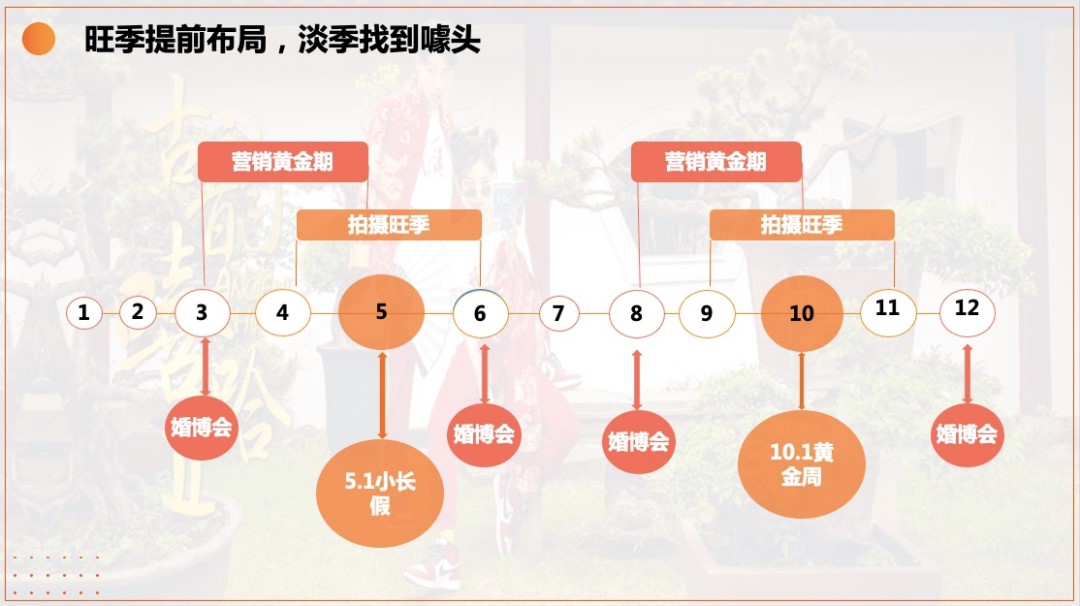 面对成本升高、业务单一、点击量低等三大问题,婚摄公司除了提升服务水平与素材创意的品质之外,更需要根据淡旺季合理布局,制订有效的推广策略,才能从行业中脱颖而出。