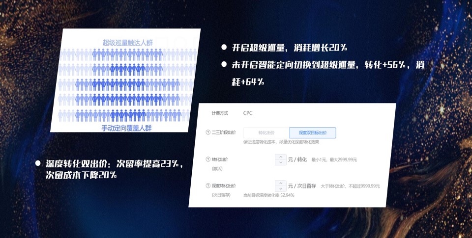 同时,巧妙运用平台工具也是获量关键。七猫在投放中,通过开启超级汇川投放平台的超级巡量,助力消耗增长,相较手动定向,覆盖人群转化率提升56%。通过深度转化双出价,在次留成本下降20%的基础上,次留率提升23%,实现消耗与次留率的增长目标高于其他渠道。